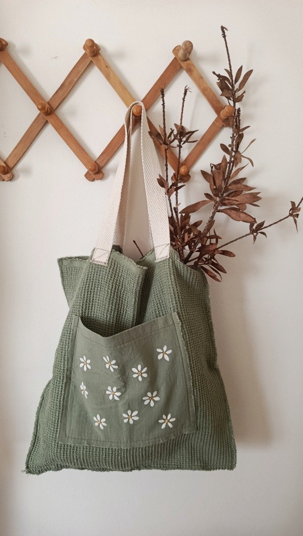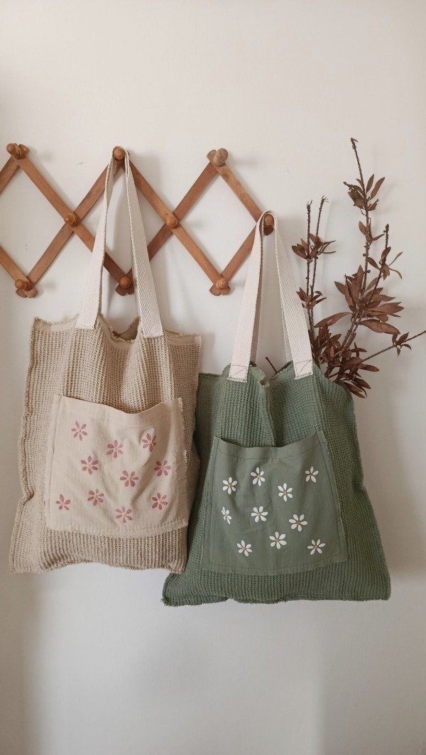 Bolsa Nido con un poco de primavera, realizado en tela waffle puro algodón