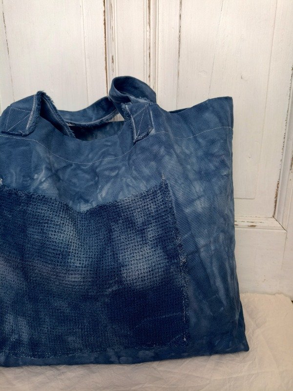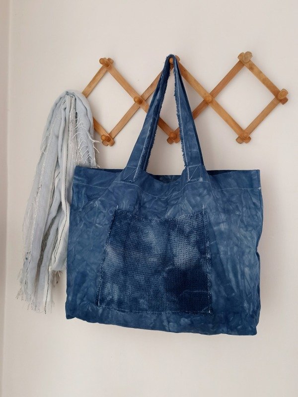 Bolso XL teñido a mano con la técnica batik.