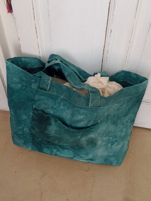 Bolso XL teñido a mano con la técnica batik.