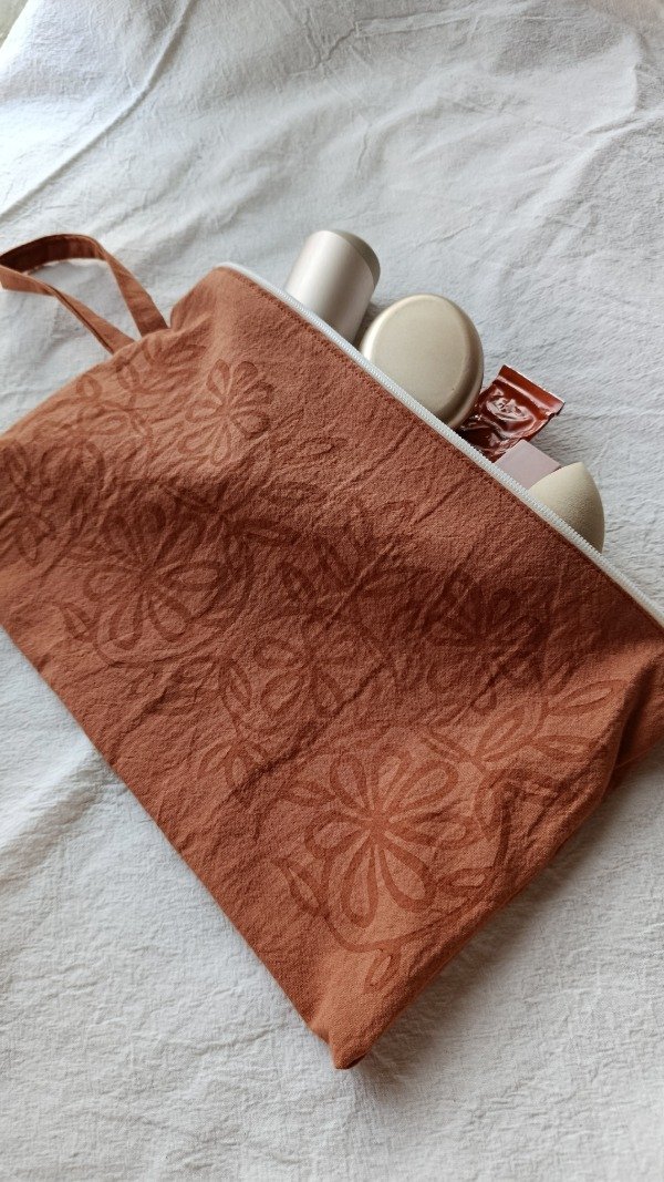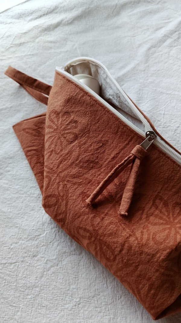 Realizado en tusor estampado a mano, interior de tusor natural.